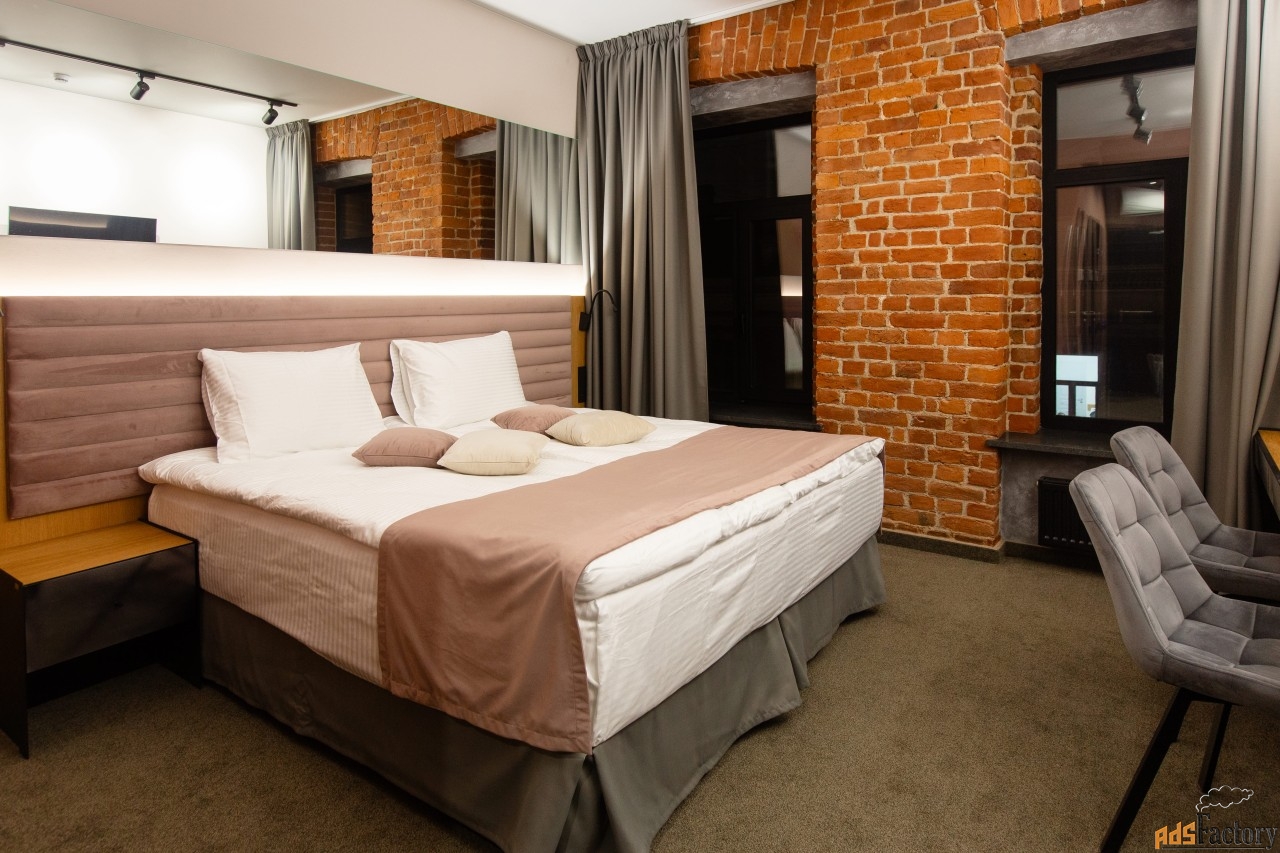 Вопрос, где остановиться, отпадает сам собой – лофт-отель «Фабрика» распахнёт для вас двери в мир уюта и стиля. Расположенный в самом сердце города, рядом с Московским вокзалом, он станет вашим проводником по петербургским красотам. Здесь вас ждут номера с индивидуальным дизайном, где кирпичные стены хранят тепло и тайны, а современная техника дарит комфорт. Это больше, чем просто отель – это место, где рождаются воспоминания, где творят, вдохновляются и любят.