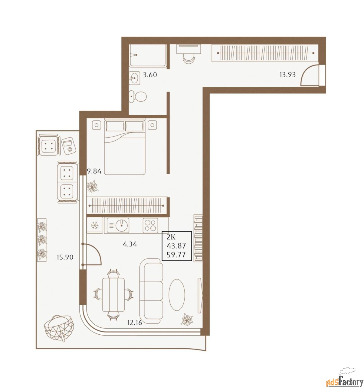 Жилая площадь 48.64 м2, кухня 11.13 м2, квартира без отделки, совмещенных санузлов - 1.
