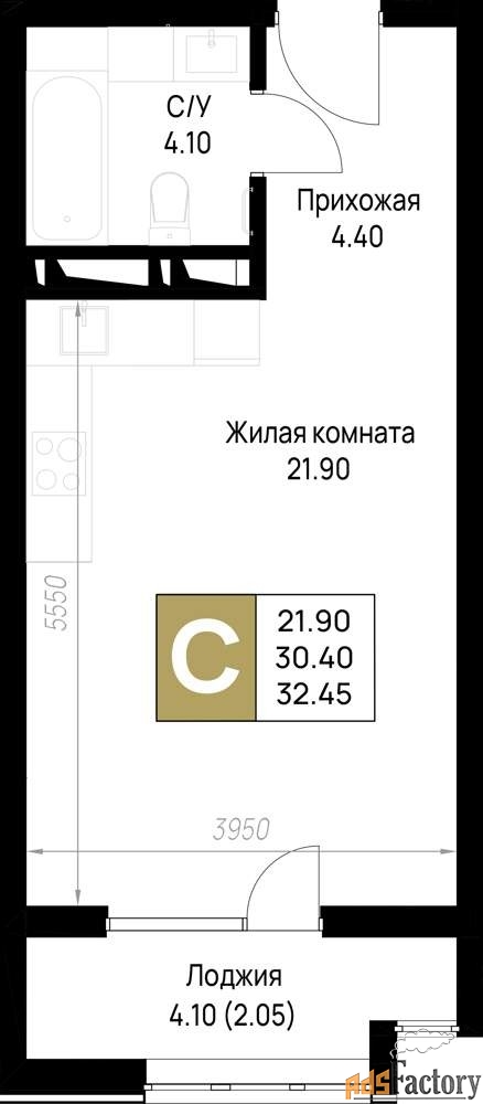 Жилая площадь 21.9 м2, предчистовая отделка, комнаты смежные.