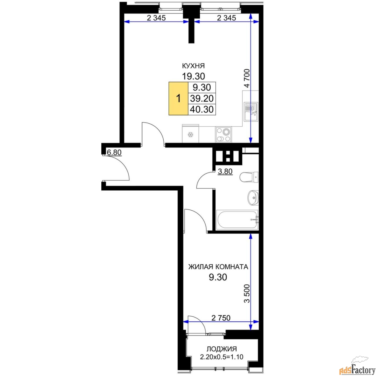 Жилая площадь 9.3 м2, кухня 22.3 м2, предчистовая отделка, комнаты изолированные.