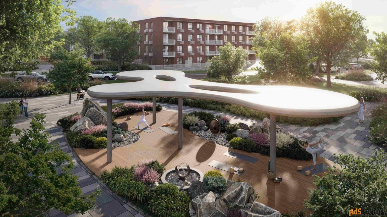 Комплекс предложит спортивные площадки, беговые дорожки, места для занятий йогой и фитнесом на свежем воздухе. Приятные скверы и аллеи будут идеальны для семейных прогулок и досуга.