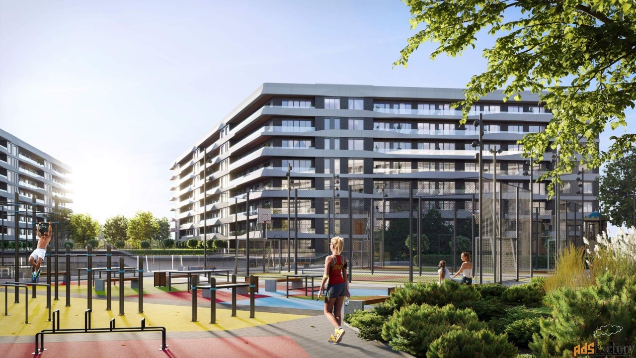 Подземная парковка, парковка охраняется. Обеспечение безопасности: видеонаблюдение, круглосуточная охрана, противопожарная система. Инфраструктура: детские площадки, спортивные площадки, места для отдыха, супермаркет, рестораны, пункты бытового обслуживания, коммерческие объекты.