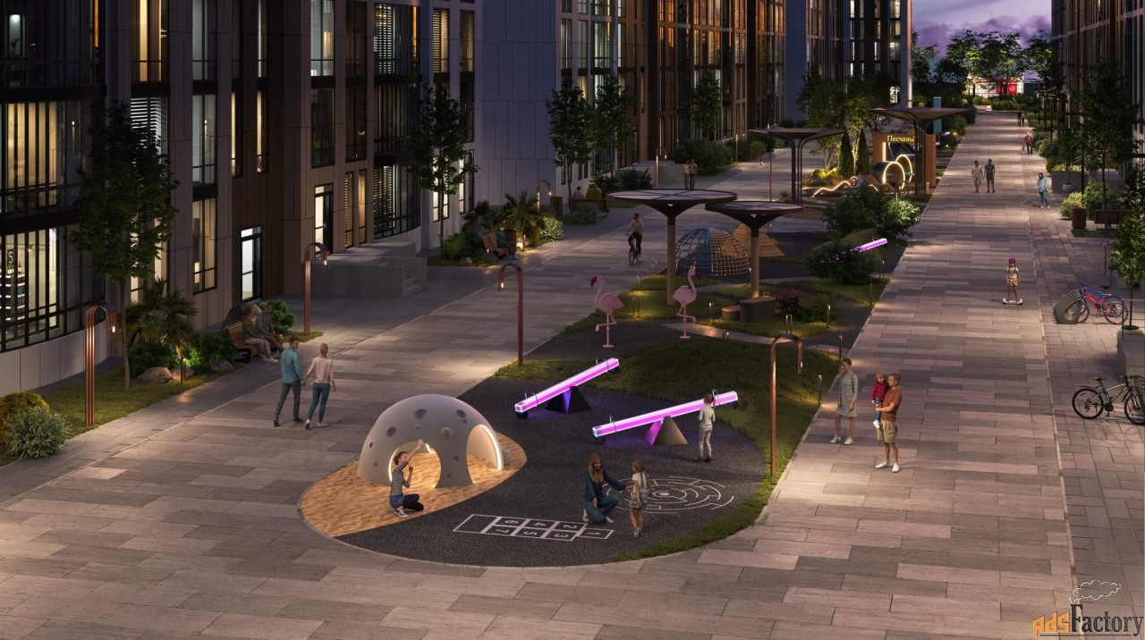 Отдельная многоуровневая парковка, парковка охраняется. Обеспечение безопасности: видеонаблюдение. Инфраструктура: детские площадки, спортивные площадки, места для отдыха.