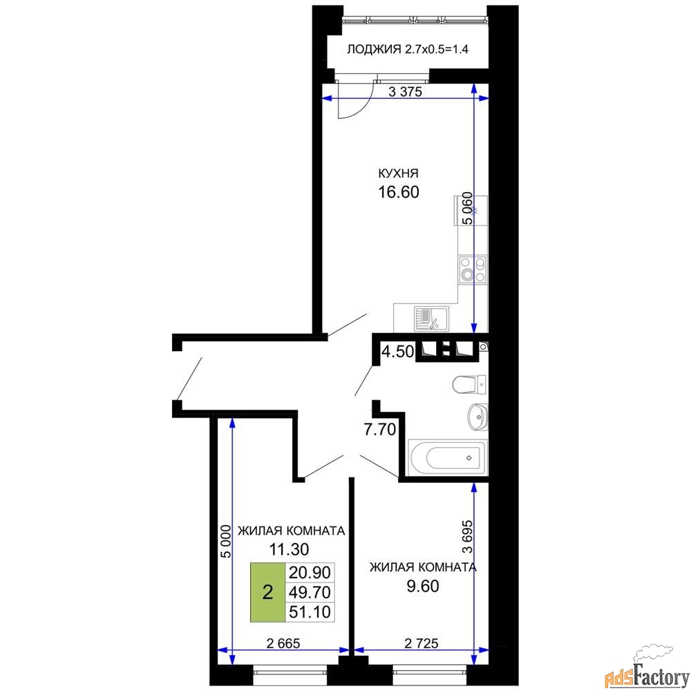 | Общая площадь (кв.м) | 51.05 |