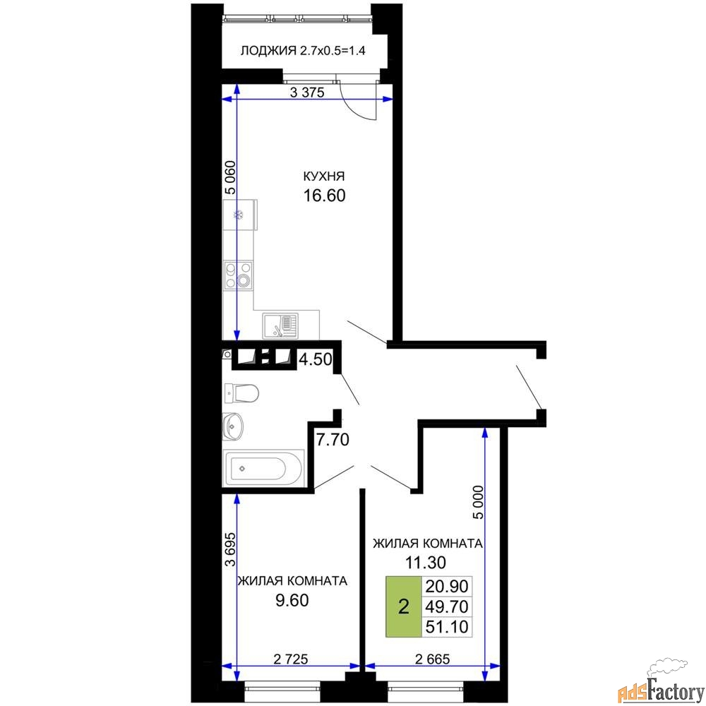 Жилая площадь 20.9 м2, кухня 16.6 м2, предчистовая отделка.