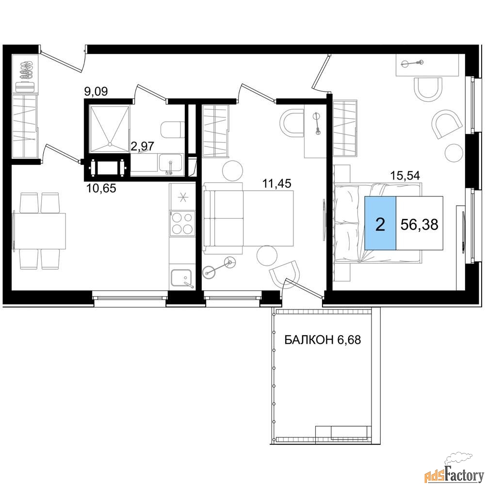 | Общая площадь (кв.м) | 56.38 |