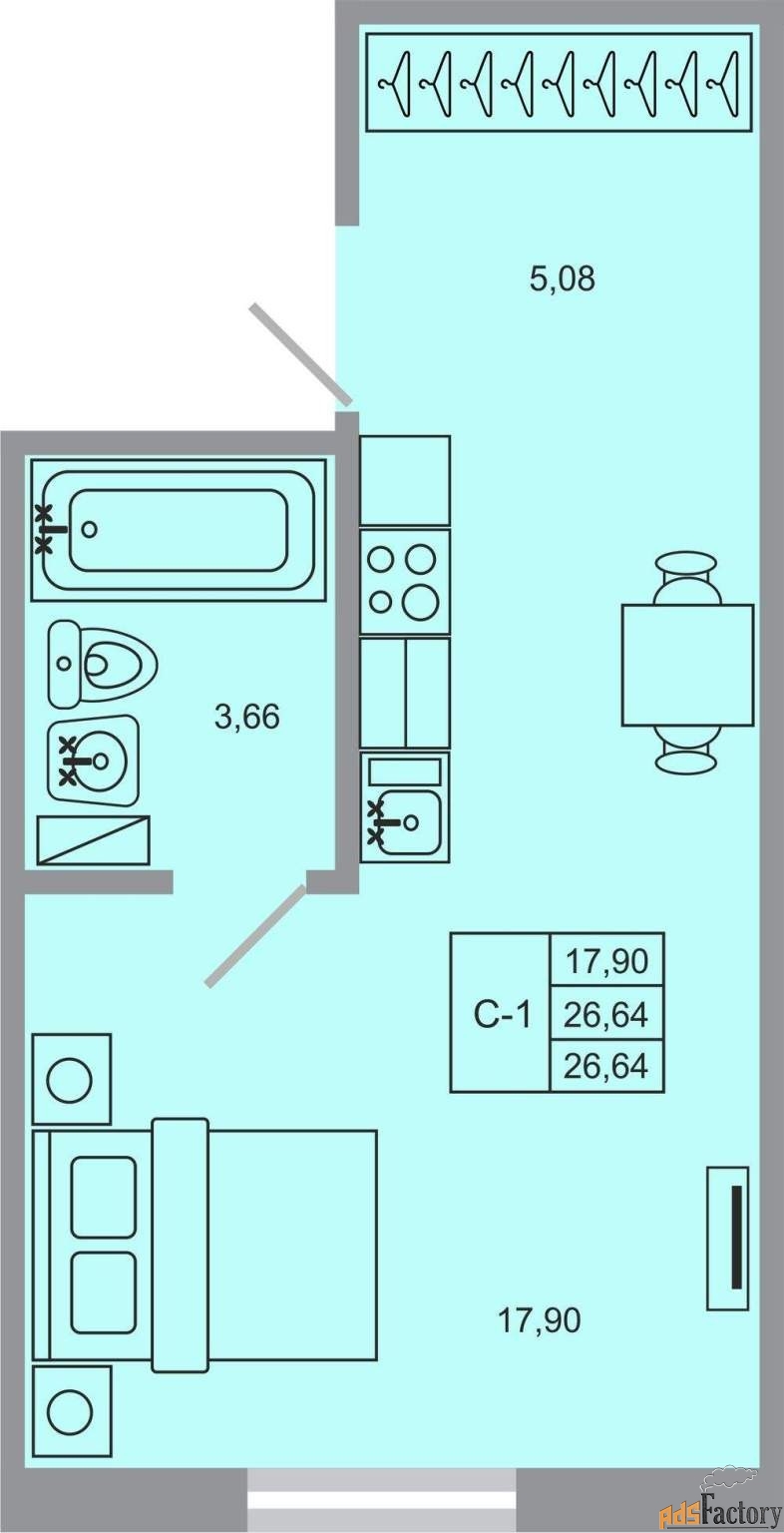 Жилая площадь 17.9 м2, чистовая отделка, комнаты изолированные.
