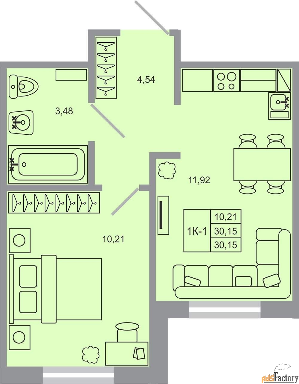 Жилая площадь 10.21 м2, кухня 11.92 м2, чистовая отделка, комнаты изолированные.