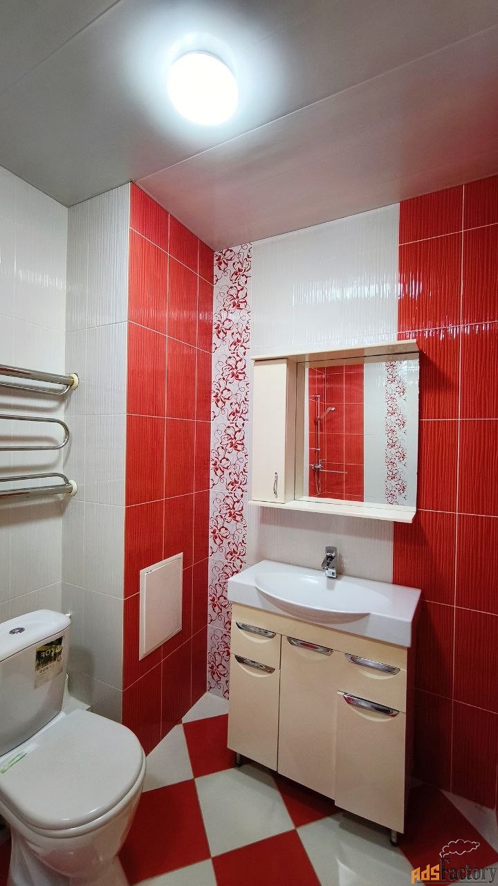 ? В квартире стены и потолки выровнены под маяк! В комнате стены отделаны обоями на полу ламинат. В кухне и коридоре на стенах обои, на полу ламинат и кафель. В санузле стены и пол покрыты кафелем, ванна акриловая. Стены лоджии отделаны пластиковыми стеновыми панелями на полу кафель. Металлическая входная дверь. Действующие приборы учёта на воду и электричество. Все запорные краны исправны, квартира сухая!