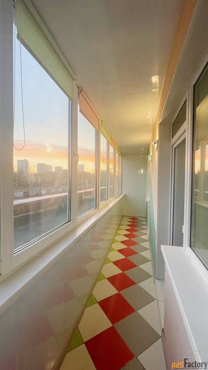 ? Окно комнаты и евро окно лоджии, выходят на южную сторону, что обеспечивает хорошее естественное освещение и тепло. Вид из окон выходит на улицу Университетская Набережная и крышу нежилых помещений, на которой летом возможно организовать террасу из цветов, а в зимнее время хранить инвентарь. В праздничные дни города любоваться салютом из окон квартиры! При открытых окнах в вечерние время с улицы веет лесными ароматами природы, а пение птиц создают волшебную атмосферу спокойствия и приносят гармонию в душевное состояние, лепота!!!