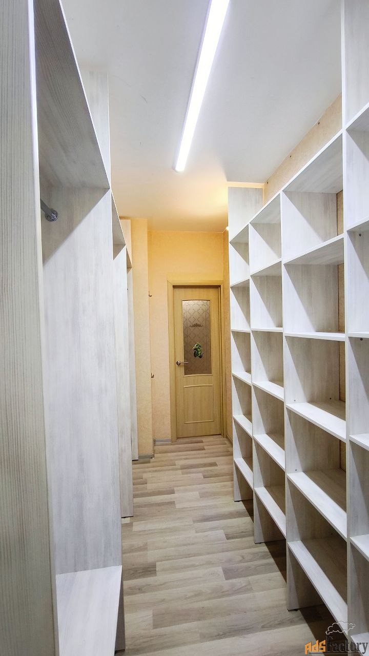 ? Полноразмерная однокомнатная квартира площадью 66,3 кв.м. в монолитно-каркасном кирпичном доме повышенной комфортности семнадцати этажей 2012 года постройки, расположена на 2 этаже и состоит из просторной кухни 15,3 кв.м. плюс лоджии 7,84 кв.м., полноформатной комнаты 25,8 кв.м., коридора 13,1 кв.м., гардеробной 6,2 кв. м. и санузла 5,8 кв.м. Высота потолков 2,7 м. Возможно увеличить пространство лоджии за счёт остекления с выносом.
