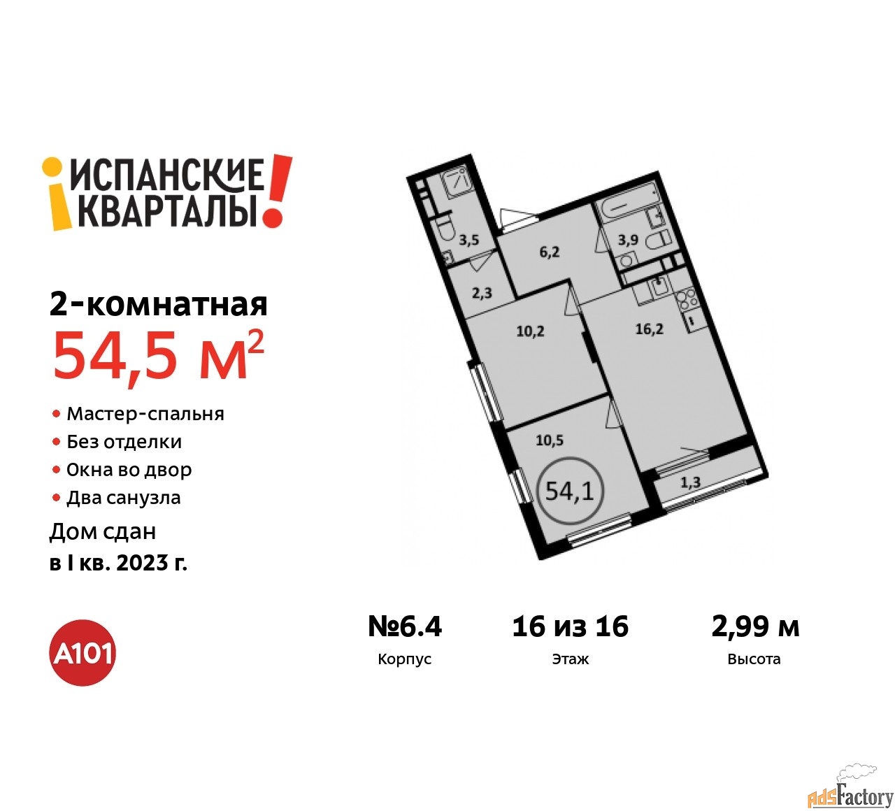 | Общая площадь (кв.м) | 54.5 |