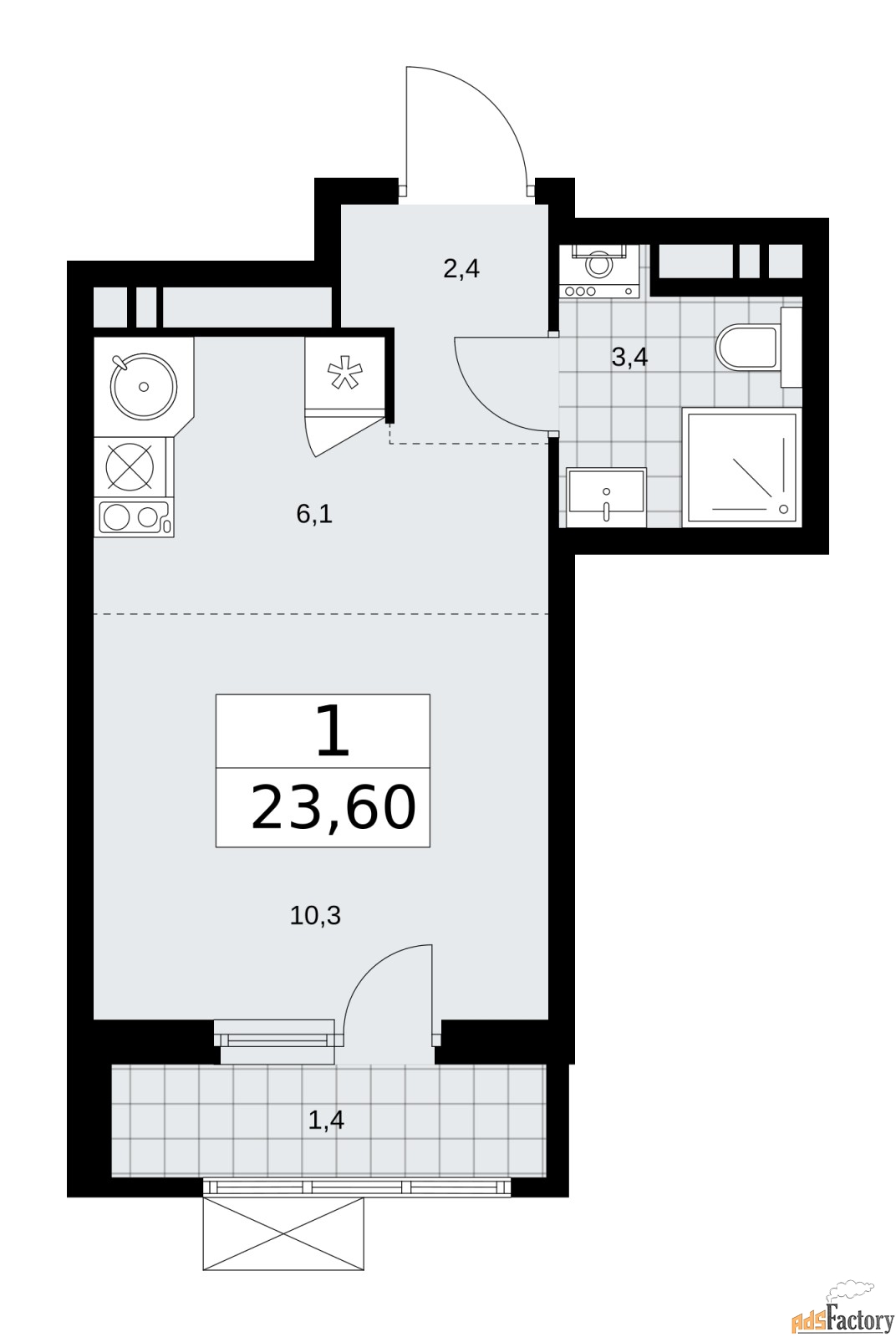 Корпус 11.2.3 в ЖК «Прокшино», в котором расположена квартира, будет построен в 2026 году. Дом монолитный, в корпусе 6 подъездов, есть 1 пассажирский и 1 грузовой лифт.