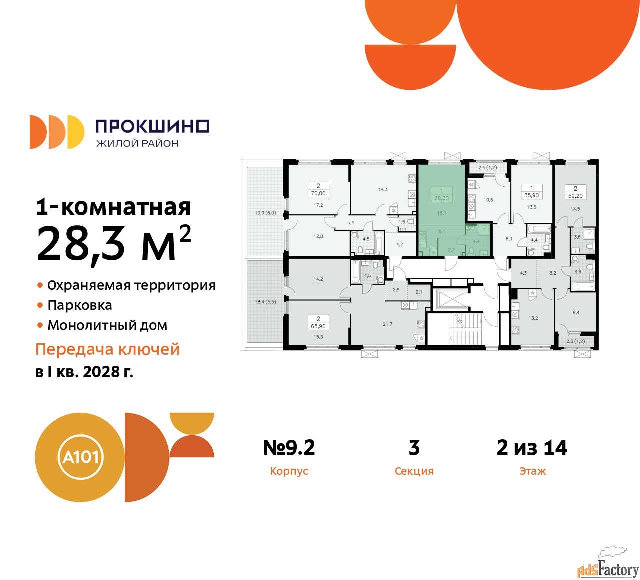 ЖК «Прокшино» расположен в 7,6 км от МКАД в Новой Москве. В 8 минутах пешком находится станция метро «Прокшино» быстрой и комфортной красной линии метро. Высокую транспортную доступность обеспечивают и два крупных шоссе, до которых легко доехать за 5 минут по новой скоростной автотрассе Солнцево – Бутово – Варшавское шоссе. Жилой комплекс «Прокшино» входит в кластер Прокшино. В районе появятся дома комфорт и бизнес-класса с подземным паркингом, закрытыми благоустроенными дворами без машин, местами для активного и созерцательного отдыха, магазинами, бытовыми сервисами и другими коммерческими объектами. Рядом пруд с собственной набережной и городской парк «Хованская дубрава». Для маленьких жителей построят детские сады, образовательный комплекс. (AQID02508430)