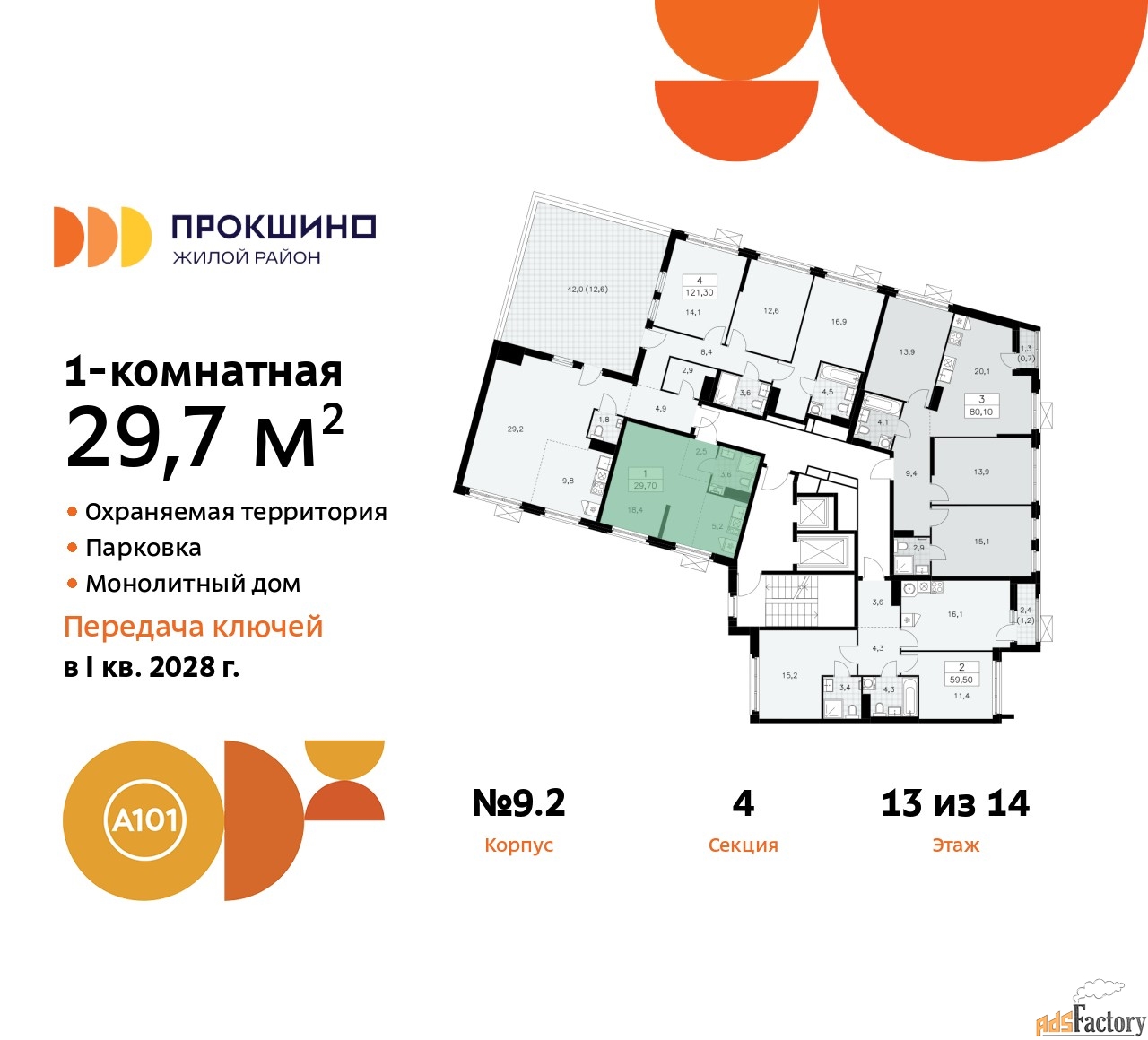 ЖК «Прокшино» расположен в 7,6 км от МКАД в Новой Москве. В 8 минутах пешком находится станция метро «Прокшино» быстрой и комфортной красной линии метро. Высокую транспортную доступность обеспечивают и два крупных шоссе, до которых легко доехать за 5 минут по новой скоростной автотрассе Солнцево – Бутово – Варшавское шоссе. Жилой комплекс «Прокшино» входит в кластер Прокшино. В районе появятся дома комфорт и бизнес-класса с подземным паркингом, закрытыми благоустроенными дворами без машин, местами для активного и созерцательного отдыха, магазинами, бытовыми сервисами и другими коммерческими объектами. Рядом пруд с собственной набережной и городской парк «Хованская дубрава». Для маленьких жителей построят детские сады, образовательный комплекс. (AQID02508512)