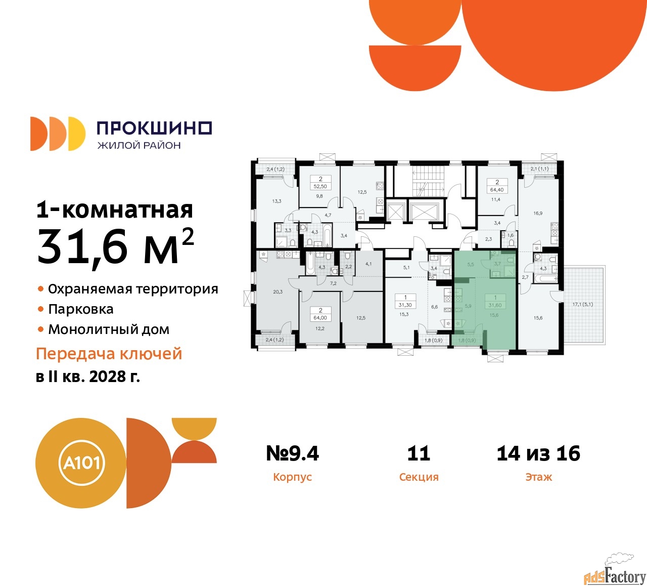 ЖК «Прокшино» расположен в 7,6 км от МКАД в Новой Москве. В 8 минутах пешком находится станция метро «Прокшино» быстрой и комфортной красной линии метро. Высокую транспортную доступность обеспечивают и два крупных шоссе, до которых легко доехать за 5 минут по новой скоростной автотрассе Солнцево – Бутово – Варшавское шоссе. Жилой комплекс «Прокшино» входит в кластер Прокшино. В районе появятся дома комфорт и бизнес-класса с подземным паркингом, закрытыми благоустроенными дворами без машин, местами для активного и созерцательного отдыха, магазинами, бытовыми сервисами и другими коммерческими объектами. Рядом пруд с собственной набережной и городской парк «Хованская дубрава». Для маленьких жителей построят детские сады, образовательный комплекс. (AQID02508982)