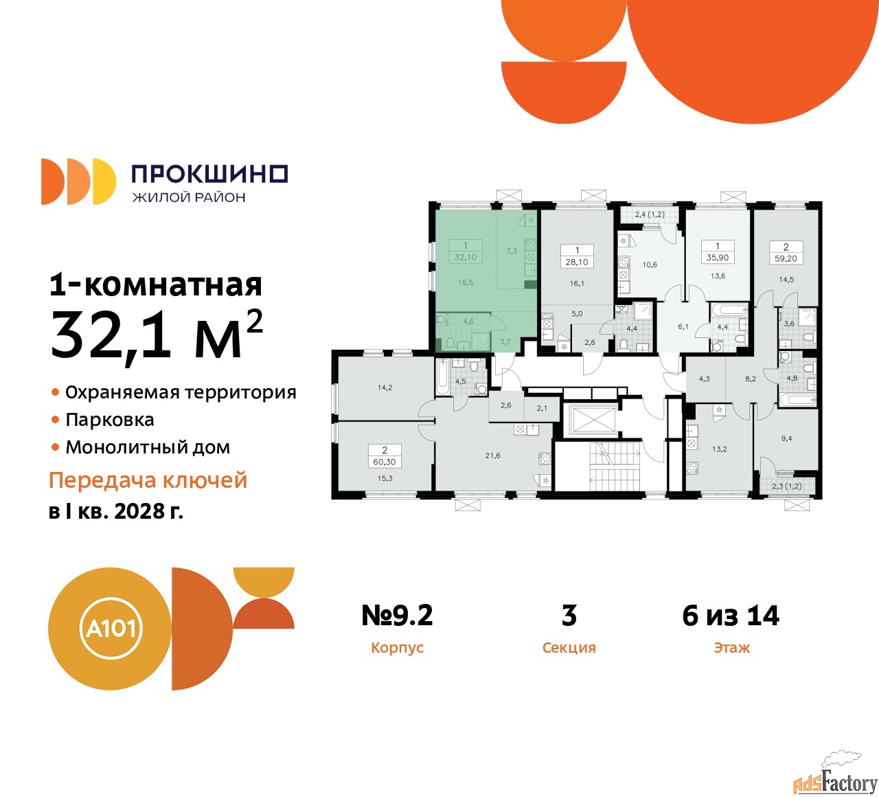 ЖК «Прокшино» расположен в 7,6 км от МКАД в Новой Москве. В 8 минутах пешком находится станция метро «Прокшино» быстрой и комфортной красной линии метро. Высокую транспортную доступность обеспечивают и два крупных шоссе, до которых легко доехать за 5 минут по новой скоростной автотрассе Солнцево – Бутово – Варшавское шоссе. Жилой комплекс «Прокшино» входит в кластер Прокшино. В районе появятся дома комфорт и бизнес-класса с подземным паркингом, закрытыми благоустроенными дворами без машин, местами для активного и созерцательного отдыха, магазинами, бытовыми сервисами и другими коммерческими объектами. Рядом пруд с собственной набережной и городской парк «Хованская дубрава». Для маленьких жителей построят детские сады, образовательный комплекс. (AQID02508449)