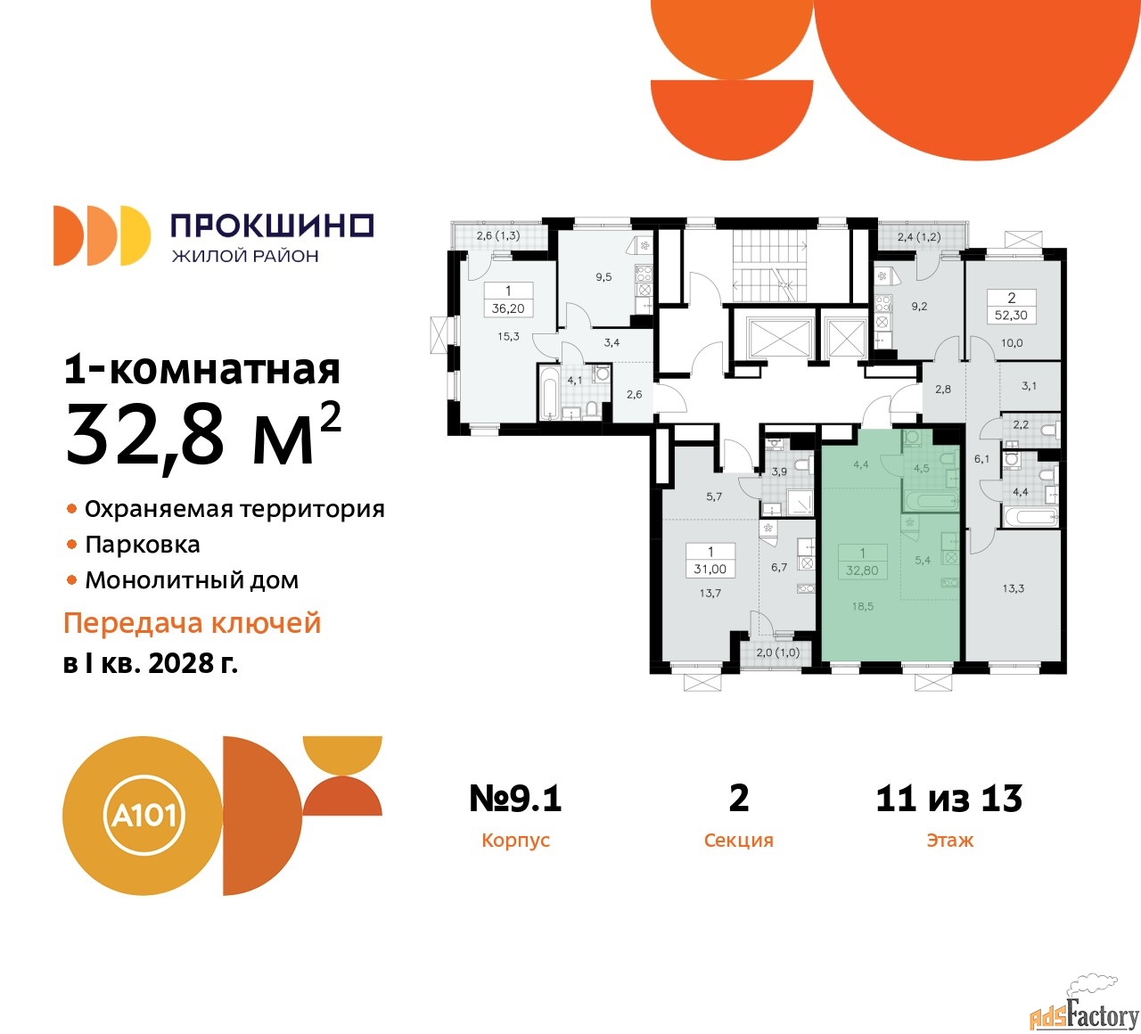 | Общая площадь (кв.м) | 32.8 |