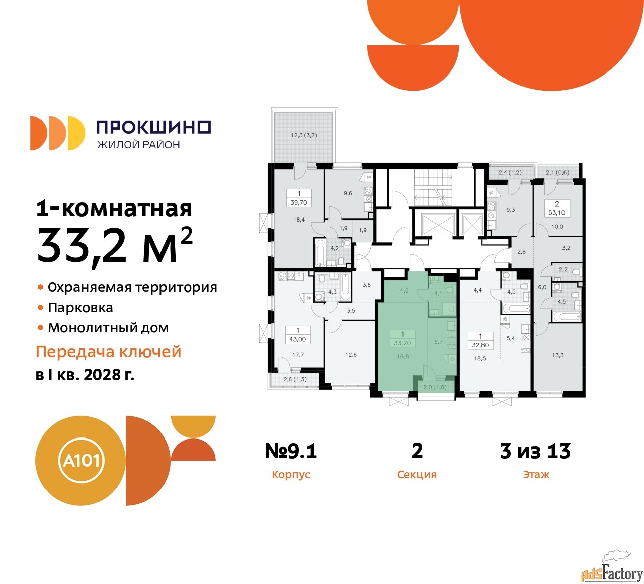 | Общая площадь (кв.м) | 33.2 |