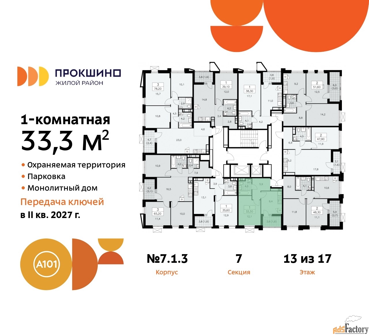| Общая площадь (кв.м) | 33.3 |