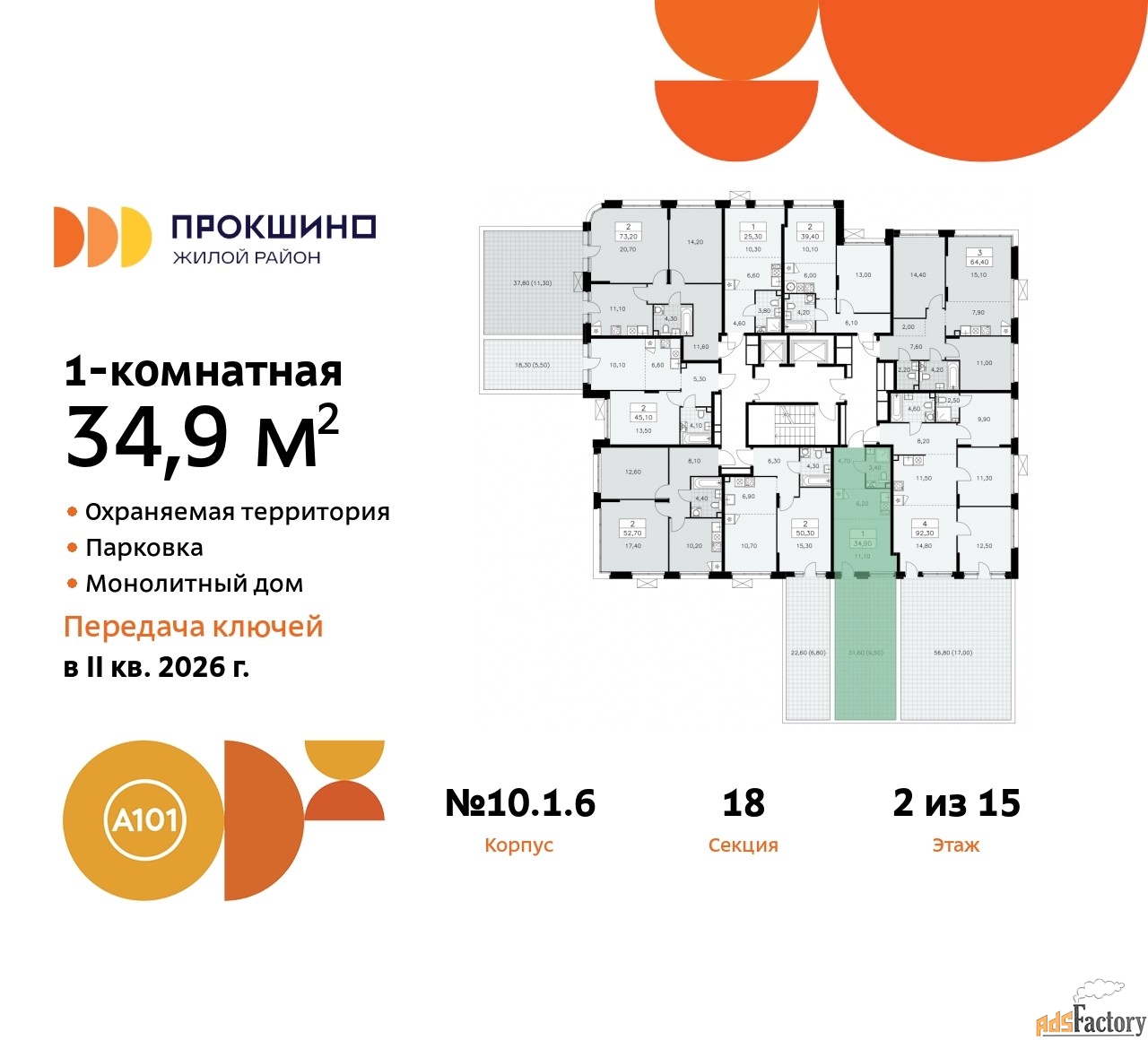 | Общая площадь (кв.м) | 34.9 |