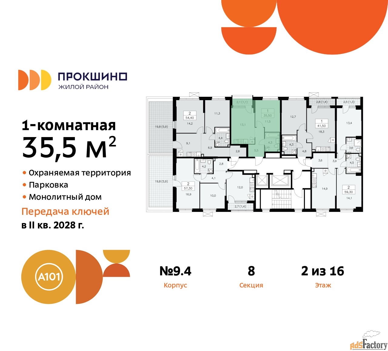 Артикул квартиры по базе застройщика 58К-9.4-448.