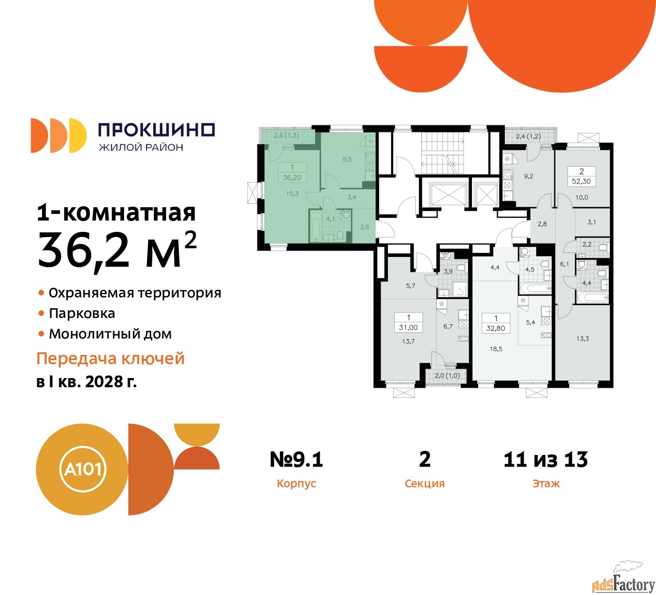 ЖК «Прокшино» расположен в 7,6 км от МКАД в Новой Москве. В 8 минутах пешком находится станция метро «Прокшино» быстрой и комфортной красной линии метро. Высокую транспортную доступность обеспечивают и два крупных шоссе, до которых легко доехать за 5 минут по новой скоростной автотрассе Солнцево – Бутово – Варшавское шоссе. Жилой комплекс «Прокшино» входит в кластер Прокшино. В районе появятся дома комфорт и бизнес-класса с подземным паркингом, закрытыми благоустроенными дворами без машин, местами для активного и созерцательного отдыха, магазинами, бытовыми сервисами и другими коммерческими объектами. Рядом пруд с собственной набережной и городской парк «Хованская дубрава». Для маленьких жителей построят детские сады, образовательный комплекс. (AQID02508426)