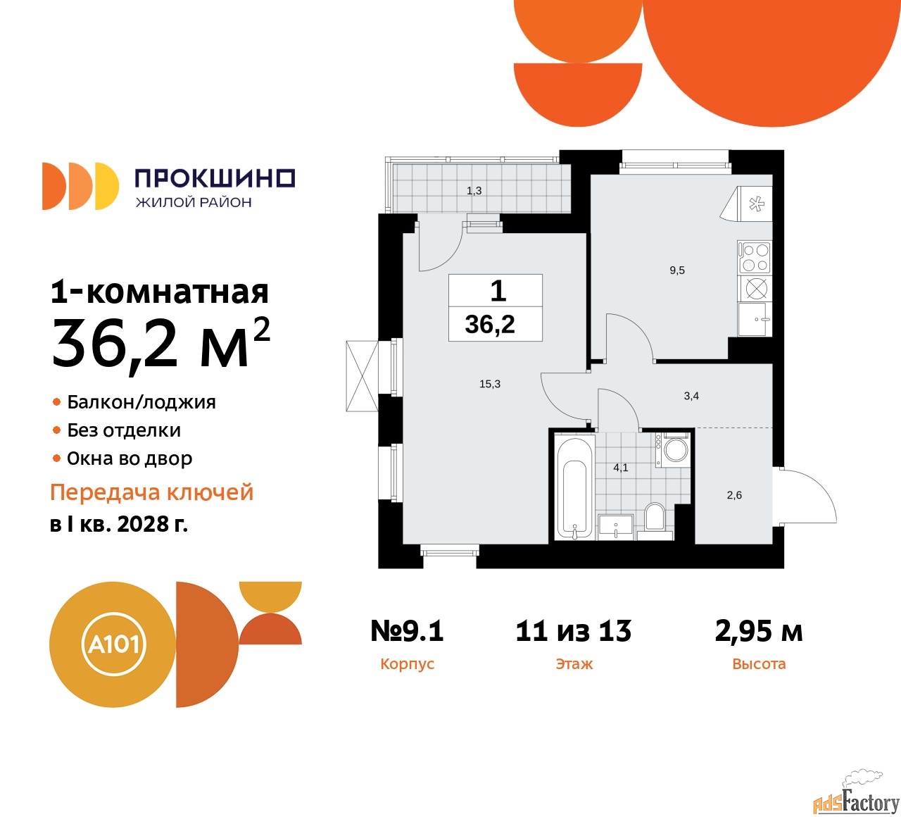 Артикул квартиры по базе застройщика 58К-9.1-98.