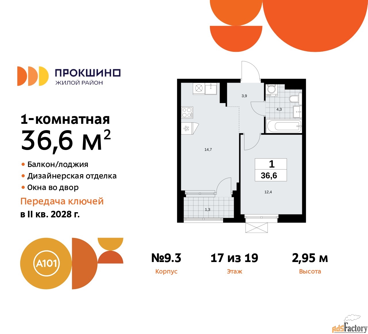 Квартира находится в корпусе 9.3. Дом монолитный, одноподъездный, высотой 19 этажей. На этаже 9 квартир. В подъезде 1 пассажирский и 1 грузовой лифт. Начало строительства - 3 квартал 2025 года. Окончание строительства - 4 квартал 2027 года. Оформление сделки по договору долевого участия.
