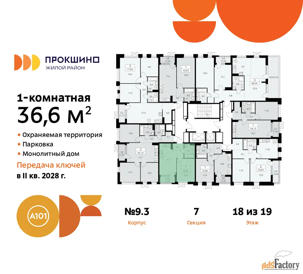 Квартира находится в корпусе 9.3. Дом монолитный, одноподъездный, высотой 19 этажей. На этаже 9 квартир. В подъезде 1 пассажирский и 1 грузовой лифт. Начало строительства - 3 квартал 2025 года. Окончание строительства - 4 квартал 2027 года. Оформление сделки по договору долевого участия.