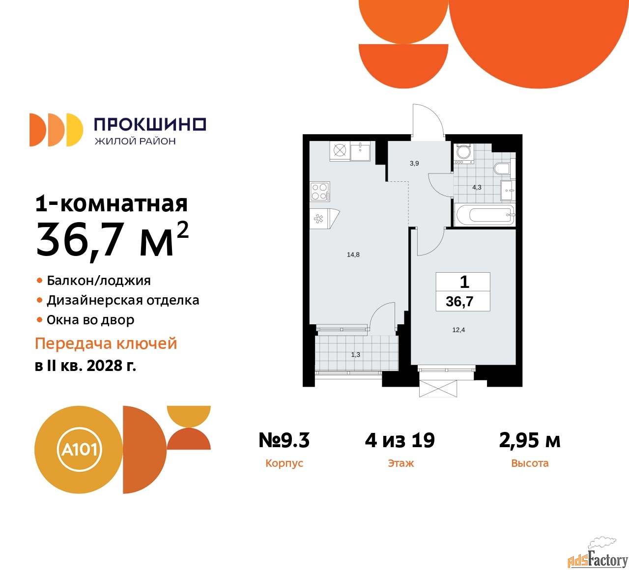 Квартира находится в корпусе 9.3. Дом монолитный, одноподъездный, высотой 19 этажей. На этаже 9 квартир. В подъезде 1 пассажирский и 1 грузовой лифт. Начало строительства - 3 квартал 2025 года. Окончание строительства - 4 квартал 2027 года. Оформление сделки по договору долевого участия.