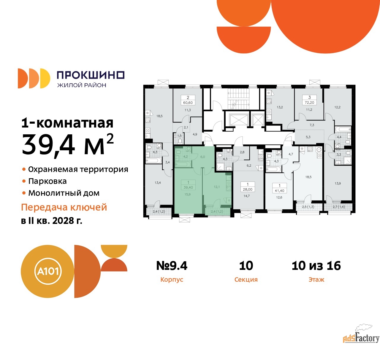 | Общая площадь (кв.м) | 39.4 |