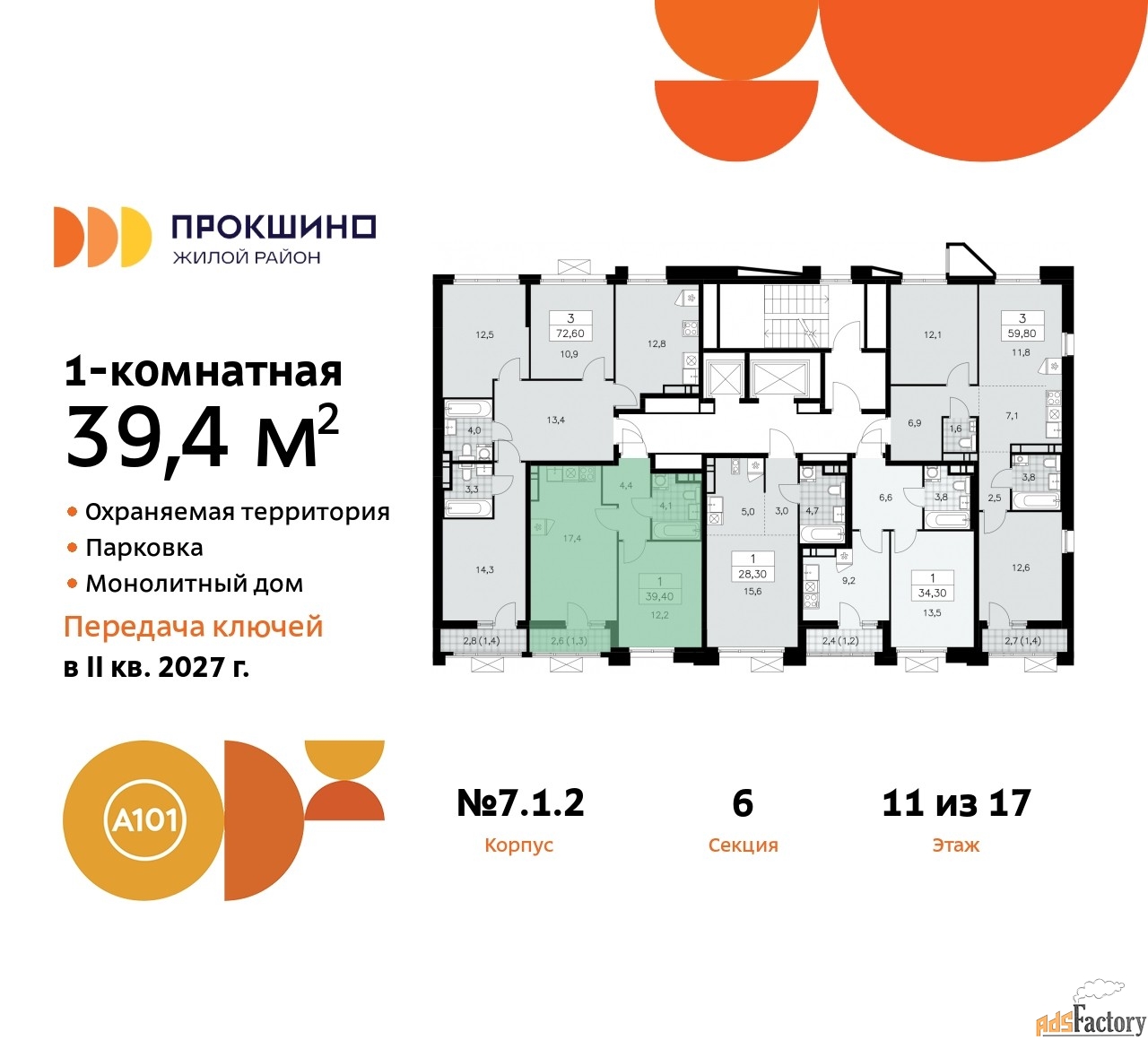 Артикул квартиры по базе застройщика 58К-7.1.2-401.