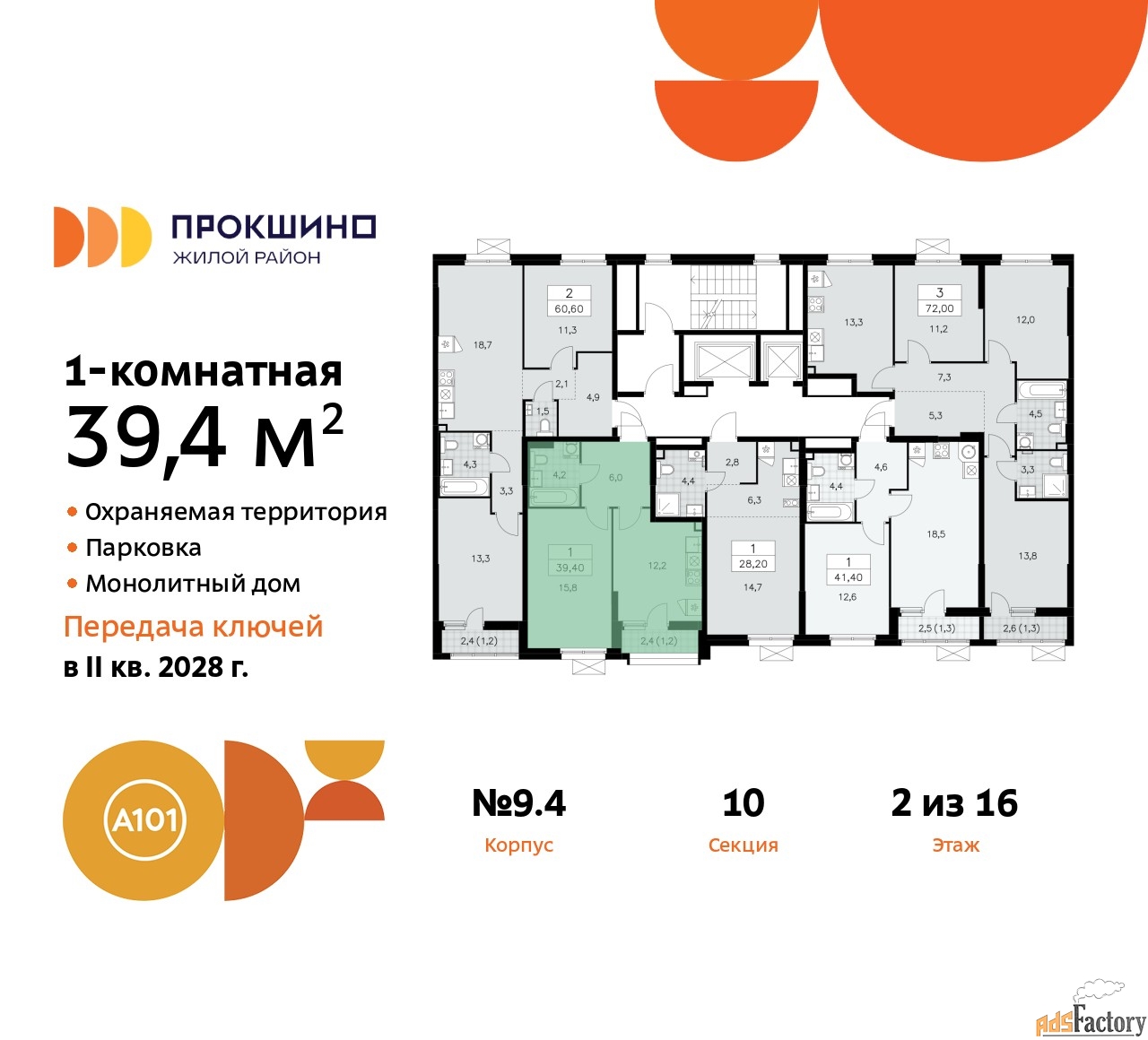 | Общая площадь (кв.м) | 39.4 |