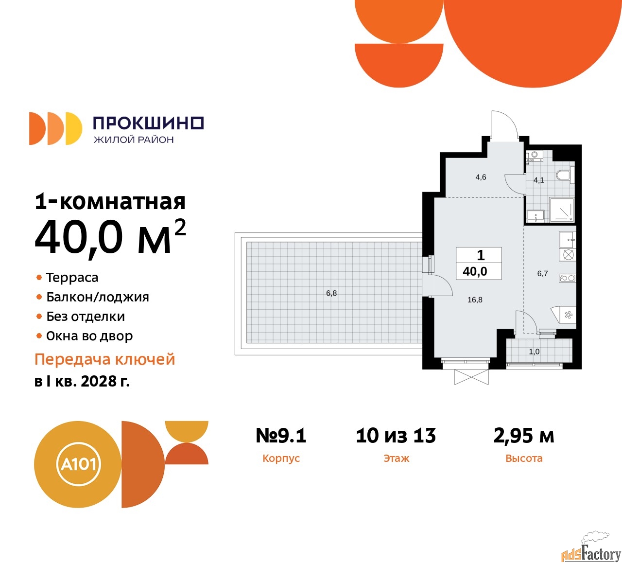 | Высота потолков (м.) | 2.95 |