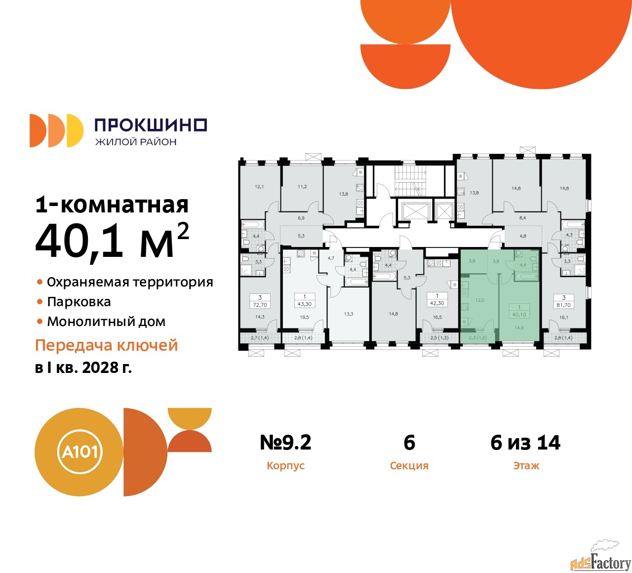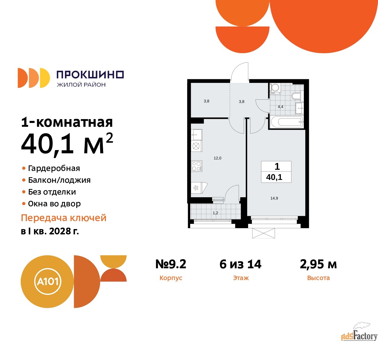 Общая площадь (кв.м) | 40.1 |