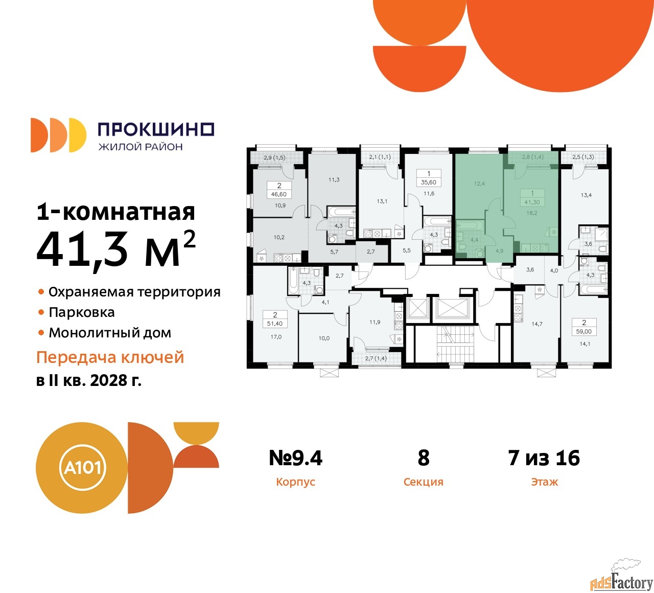 | Общая площадь (кв.м) | 41.3 |