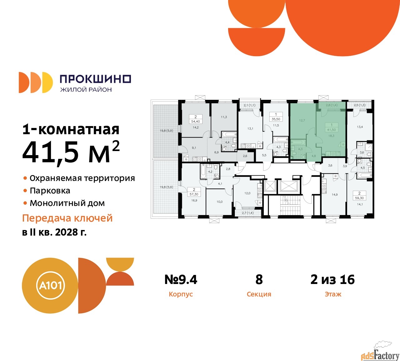 Дом монолитный, черырехподъездный, переменной этажности, от 10 до 16 этажей. Квартира находится в 1-й секции высотой 16 этажей в корпусе 9.4. На этаже 5 квартир. В подъезде 1 пассажирский и 1 грузовой лифт. Начало строительства - 3 квартал 2025 года. Окончание строительства - 4 квартал 2027 года. Оформление сделки по договору долевого участия.