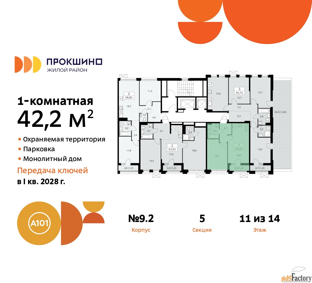 | Общая площадь (кв.м) | 42.2 |