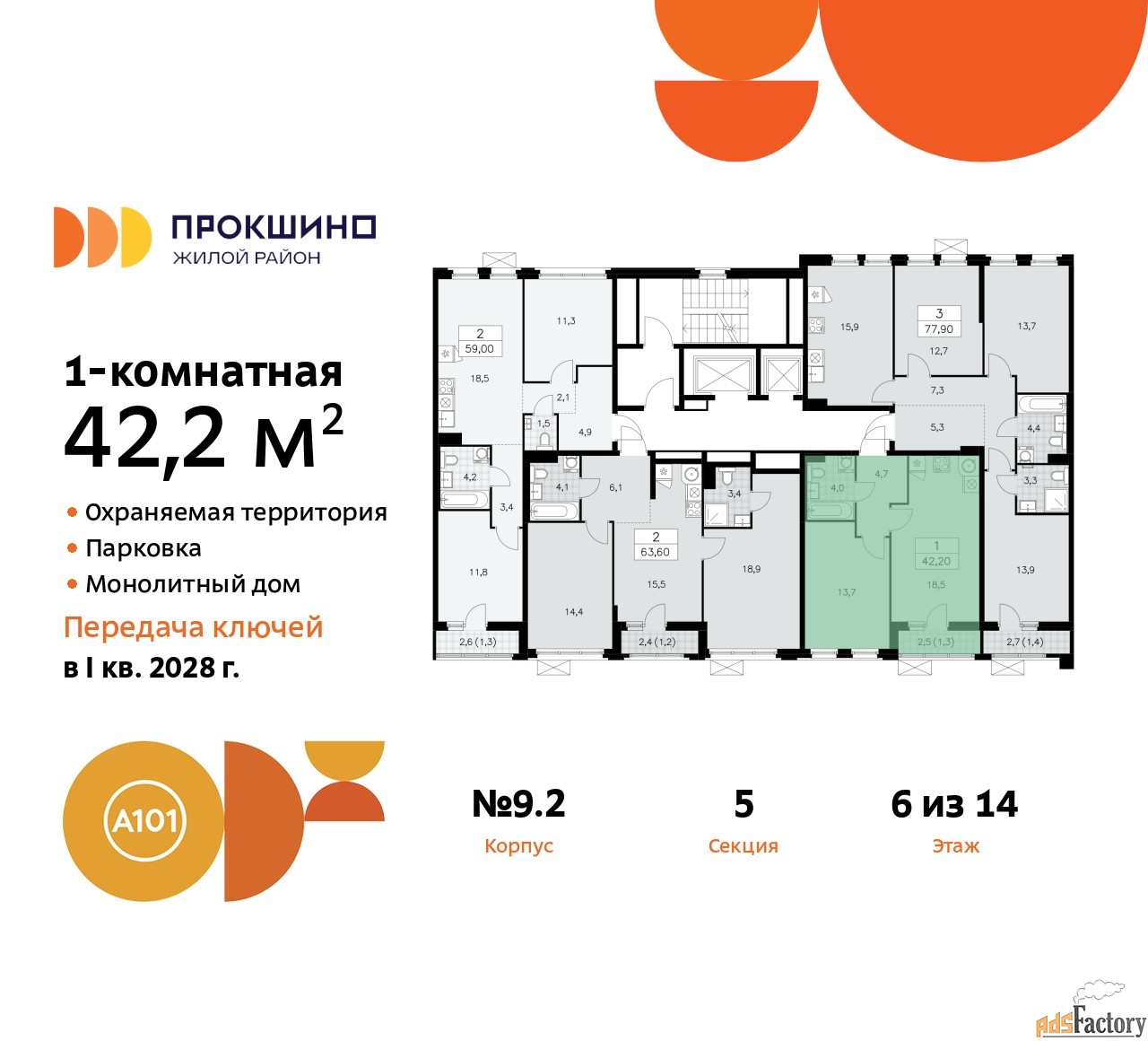 ЖК «Прокшино» расположен в 7,6 км от МКАД в Новой Москве. В 8 минутах пешком находится станция метро «Прокшино» быстрой и комфортной красной линии метро. Высокую транспортную доступность обеспечивают и два крупных шоссе, до которых легко доехать за 5 минут по новой скоростной автотрассе Солнцево – Бутово – Варшавское шоссе. Жилой комплекс «Прокшино» входит в кластер Прокшино. В районе появятся дома комфорт и бизнес-класса с подземным паркингом, закрытыми благоустроенными дворами без машин, местами для активного и созерцательного отдыха, магазинами, бытовыми сервисами и другими коммерческими объектами. Рядом пруд с собственной набережной и городской парк «Хованская дубрава». Для маленьких жителей построят детские сады, образовательный комплекс. (AQID02508532)