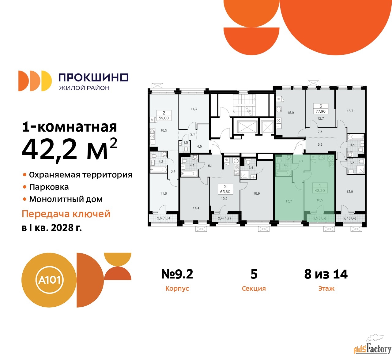 Артикул квартиры по базе застройщика 58К-9.2-222.