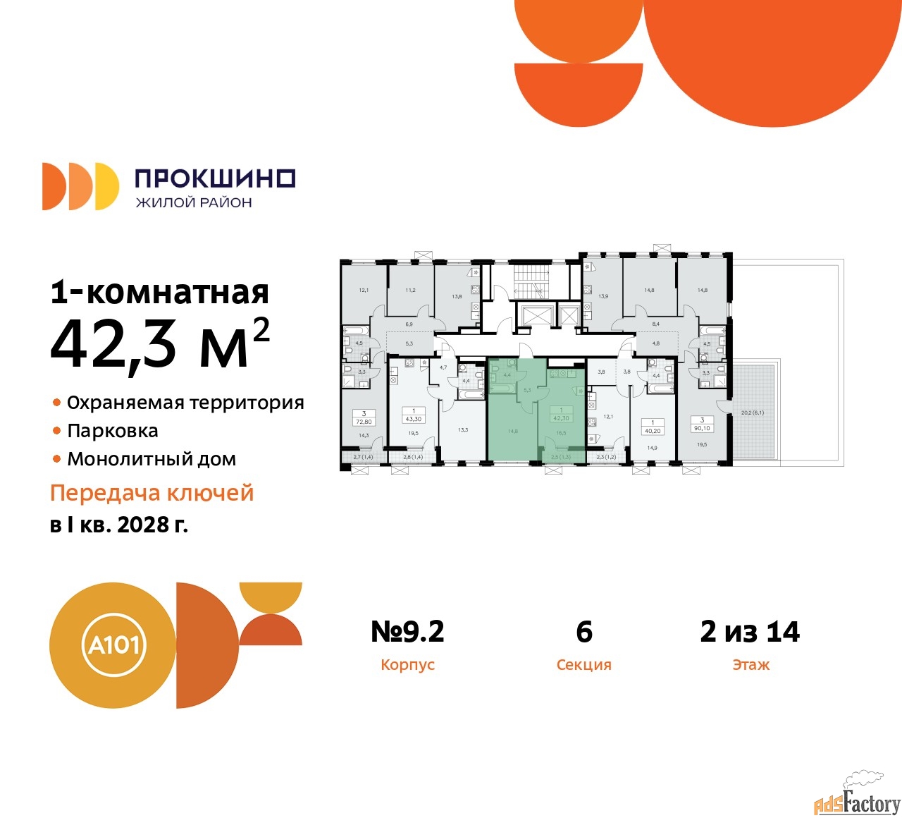 | Общая площадь (кв.м) | 42.3 |