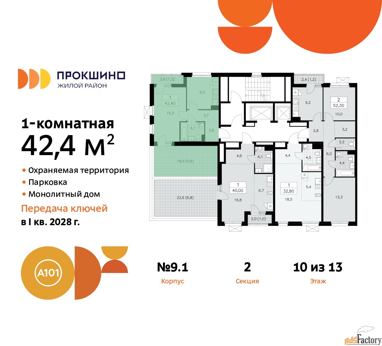 ЖК «Прокшино» расположен в 7,6 км от МКАД в Новой Москве. В 8 минутах пешком находится станция метро «Прокшино» быстрой и комфортной красной линии метро. Высокую транспортную доступность обеспечивают и два крупных шоссе, до которых легко доехать за 5 минут по новой скоростной автотрассе Солнцево – Бутово – Варшавское шоссе. Жилой комплекс «Прокшино» входит в кластер Прокшино. В районе появятся дома комфорт и бизнес-класса с подземным паркингом, закрытыми благоустроенными дворами без машин, местами для активного и созерцательного отдыха, магазинами, бытовыми сервисами и другими коммерческими объектами. Рядом пруд с собственной набережной и городской парк «Хованская дубрава». Для маленьких жителей построят детские сады, образовательный комплекс. (AQID02508423)
