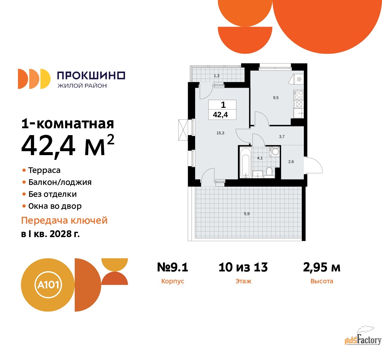 Артикул квартиры по базе застройщика 58К-9.1-94.