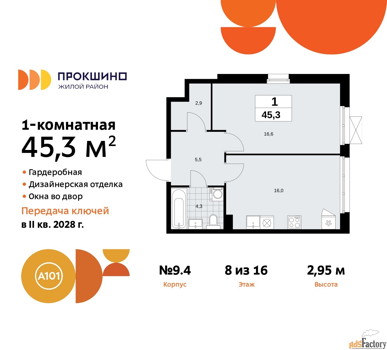 | Общая площадь (кв.м) | 45.3 |