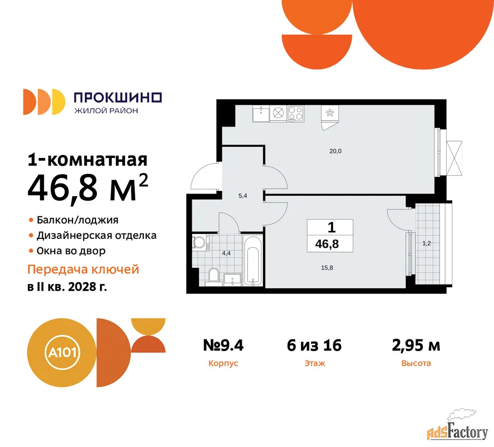 ЖК «Прокшино» расположен в 7,6 км от МКАД в Новой Москве. В 8 минутах пешком находится станция метро «Прокшино» быстрой и комфортной красной линии метро. Высокую транспортную доступность обеспечивают и два крупных шоссе, до которых легко доехать за 5 минут по новой скоростной автотрассе Солнцево – Бутово – Варшавское шоссе. Жилой комплекс «Прокшино» входит в кластер Прокшино. В районе появятся дома комфорт и бизнес-класса с подземным паркингом, закрытыми благоустроенными дворами без машин, местами для активного и созерцательного отдыха, магазинами, бытовыми сервисами и другими коммерческими объектами. Рядом пруд с собственной набережной и городской парк «Хованская дубрава». Для маленьких жителей построят детские сады, образовательный комплекс. (AQID02508858)