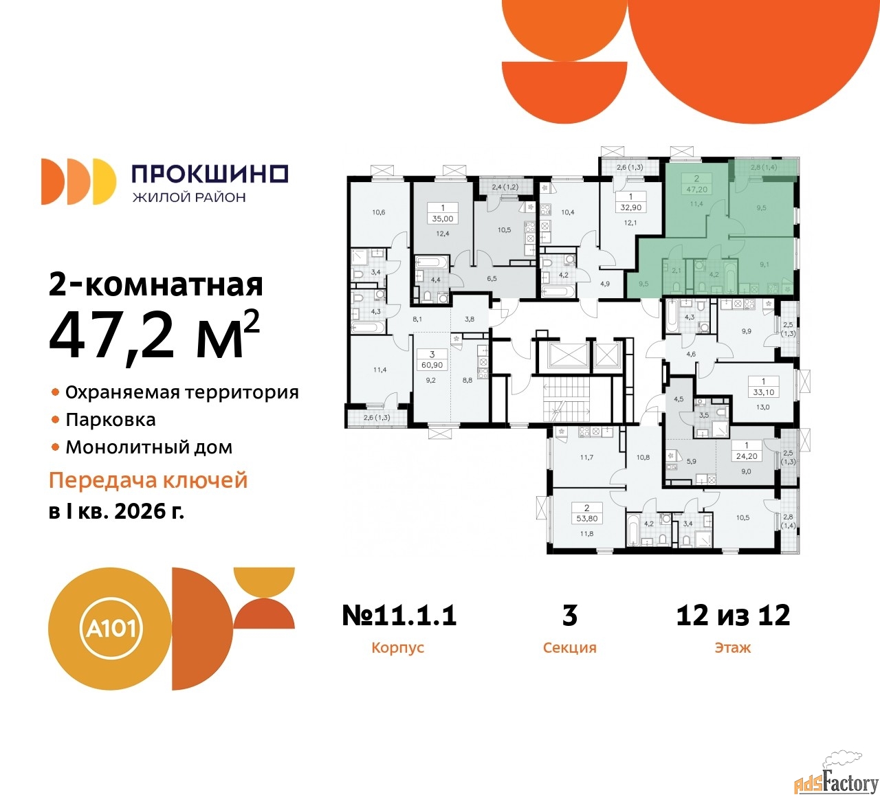 Артикул квартиры по базе застройщика 58К-11.1.1-184.
