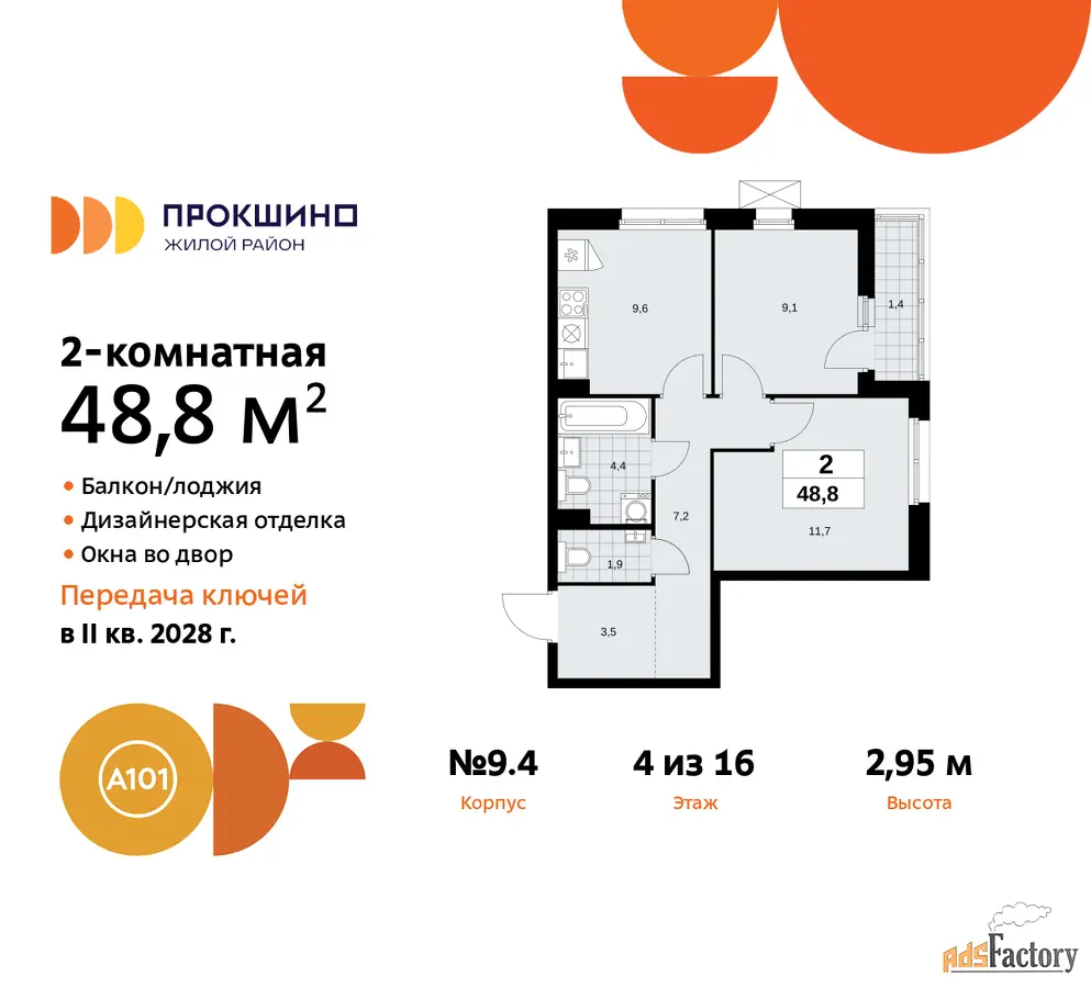 | Общая площадь (кв.м) | 48.8 |