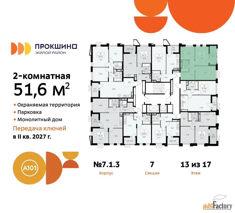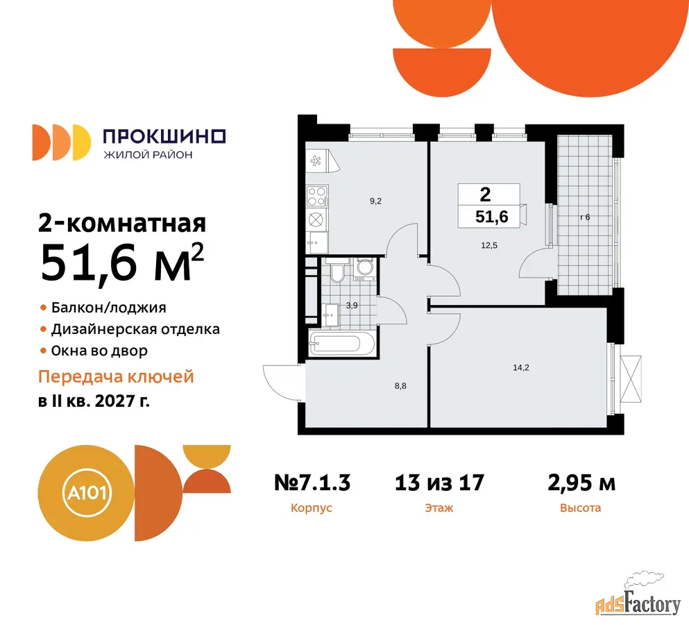 Квартира находится в корпусе 7.1.3. Дом монолитный, одноподъездный, высотой 17 этажей. На этаже 9 квартир. В подъезде 1 пассажирский и 1 грузовой лифт. Начало строительства - 4 квартал 2024 года. Окончание строительства - 2 квартал 2027 года. Оформление сделки по договору долевого участия.
