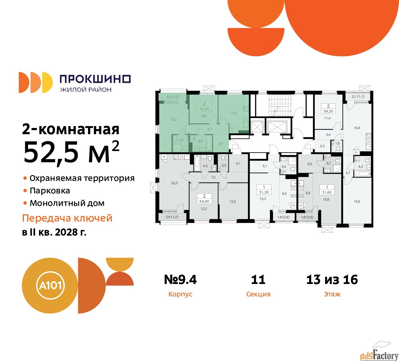 Артикул квартиры по базе застройщика 58К-9.4-672.